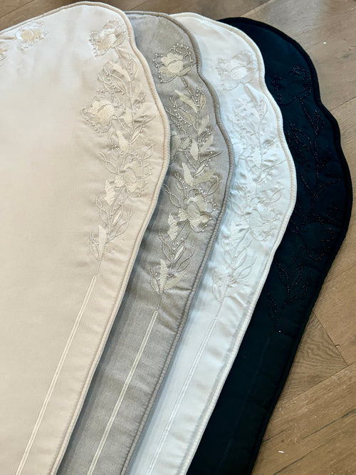 Linen Prayer Mat with Floral Embroidery and Beads – Islamic Prayer Rug